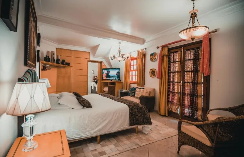 A pousada possui 6 suítes Masters Temáticas, sendo as Suítes Índia, Turquia, Bali, Árabe, África e a Suíte Oriental. A Pousada é exclusiva para casais e não aceita Pets.